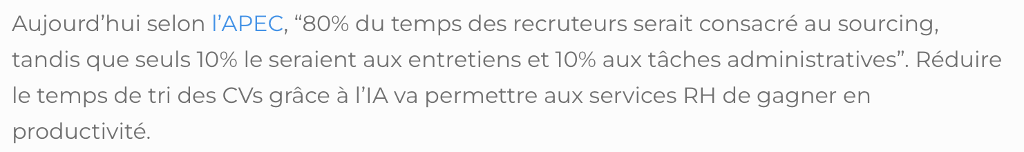 - Implémenter des outils d’IA dans notre quotidien en leur laissant faire le boulot que le meilleur des Chargés de Recrutement ne pourrait faire.